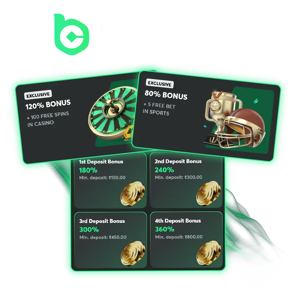 The Sports Deposit Bonus supports accumulator betting and credits extra funds on the first 4 deposits. The first and second deposits add an 80% bonus up to ₹90,000 and include 5 Free Bets. The third and fourth deposits add a 60% bonus up to ₹90,000. Minimum deposits start from ₹450, and bonus funds require use within 7 days. The deposit and bonus balance requires 20x wagering through accumulator bets with at least 3 selections at odds of 1.5 or higher.