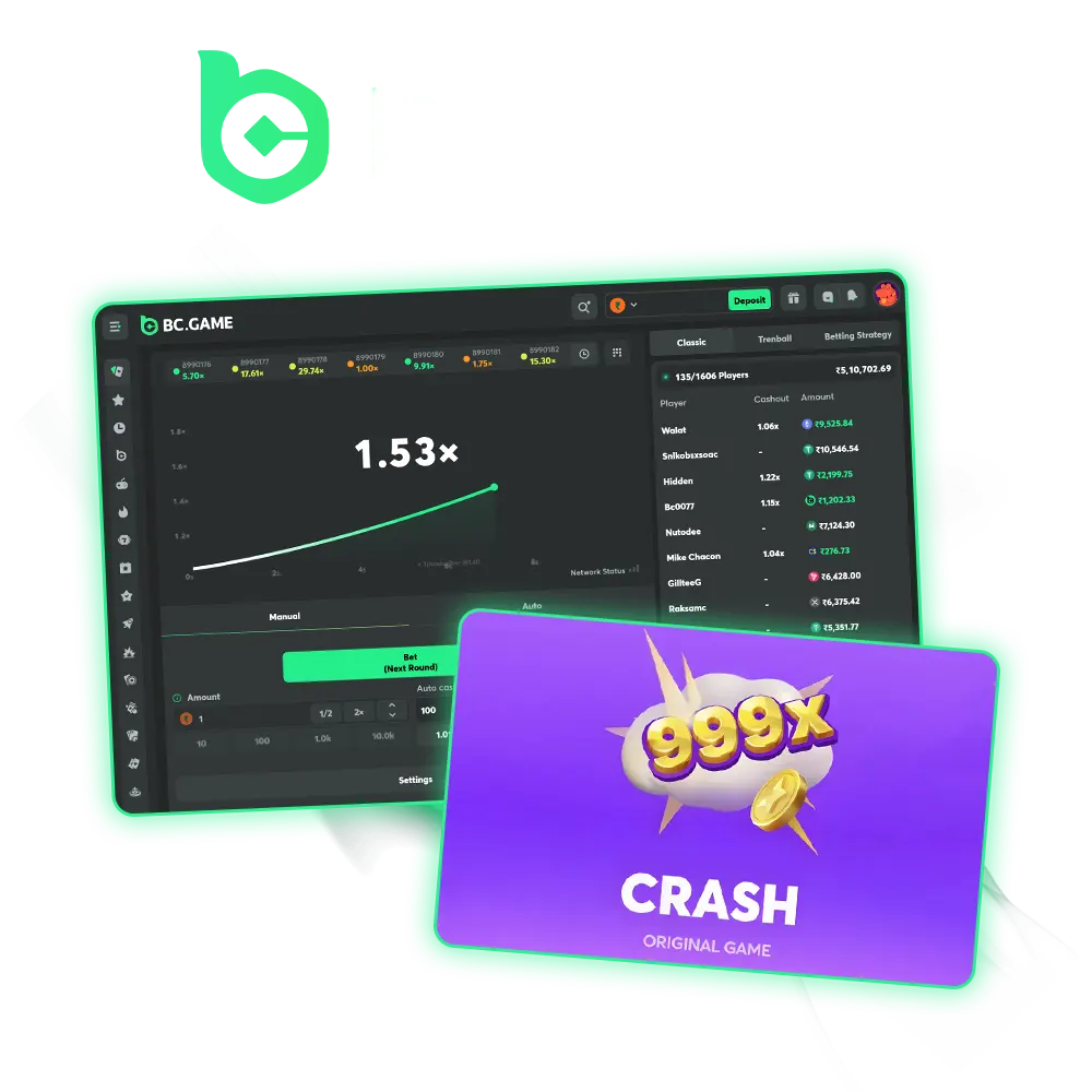 Crash at BC Game runs as a real-time multiplayer title with a rising multiplier and instant round results. Each round follows a short betting window, then a visible growth phase until the crash point appears. Decisions focus on timing, payout targets, and risk control rather than complex mechanics. Indian players access the game through a browser or mobile devices, with crypto and local payment support available after registration.